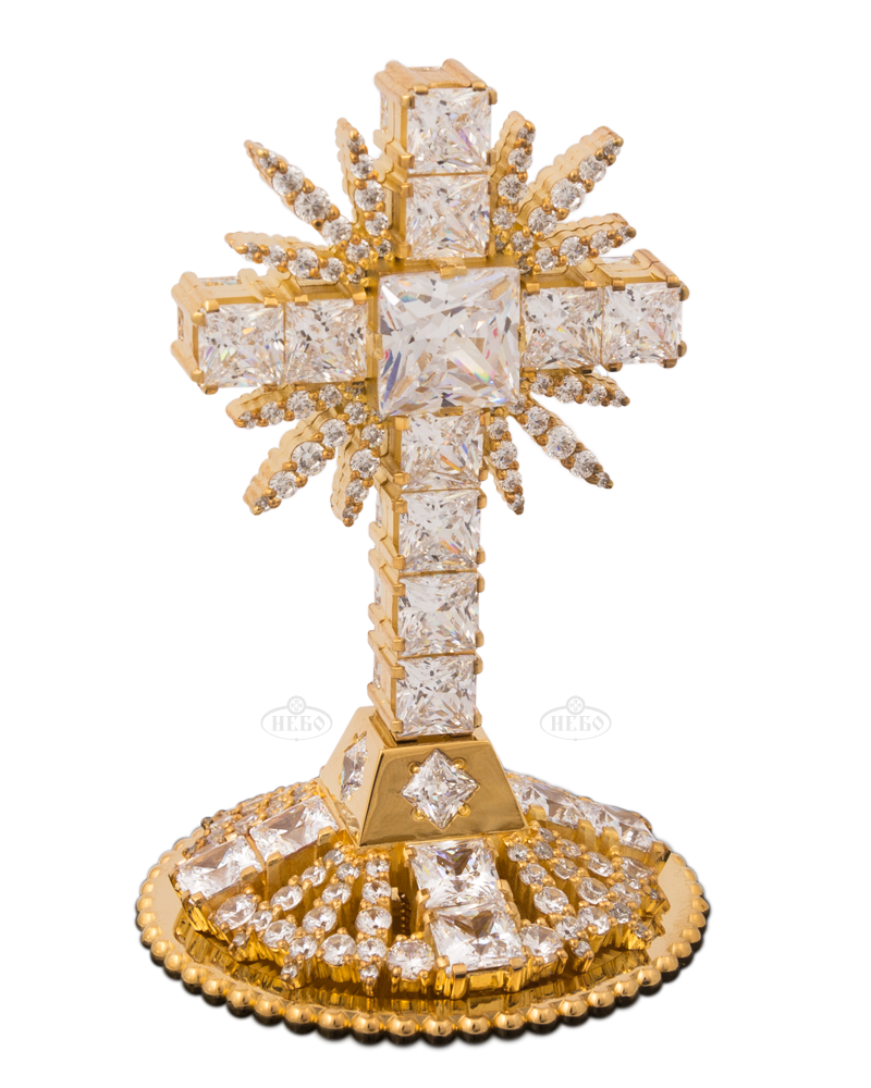 Хрест виготовлений з латуні з декоративним покриттям золота. Тому виріб не тьмяніє і не темніє з часом. Якщо не піддавати виріб механічним пошкодженням, він збереже свою красу століття. Під замовлення виготовляємо хрести з дорогоцінних металів.